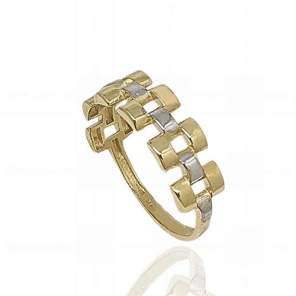 Sortija Oro Amarillo y Blanco de 18 quilates de motivo eslabón de 6mm de ancho.