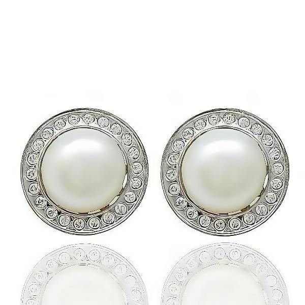 Pendientes Oro Blanco y Amarillo de 18 quilates con perla de 9mm y cerco con circonitas, cierre de presion.