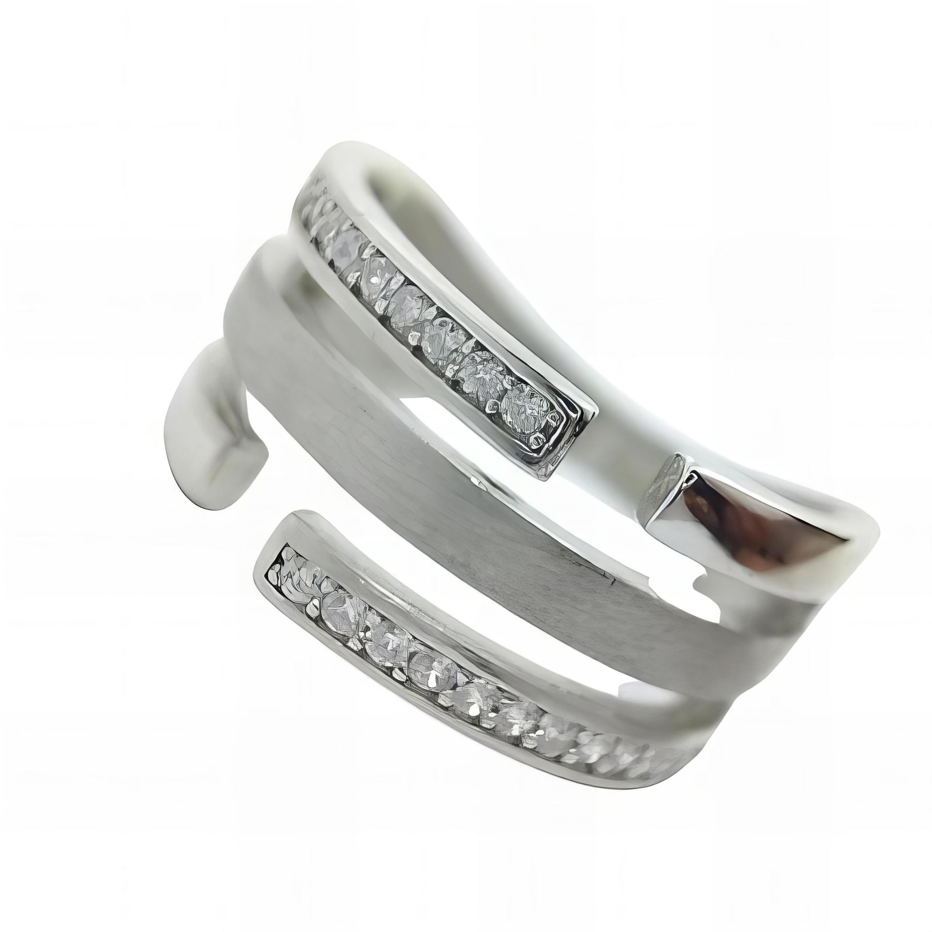 Sortija Plata de Ley en mate y brillo con circonitas, ancho de 9mm.