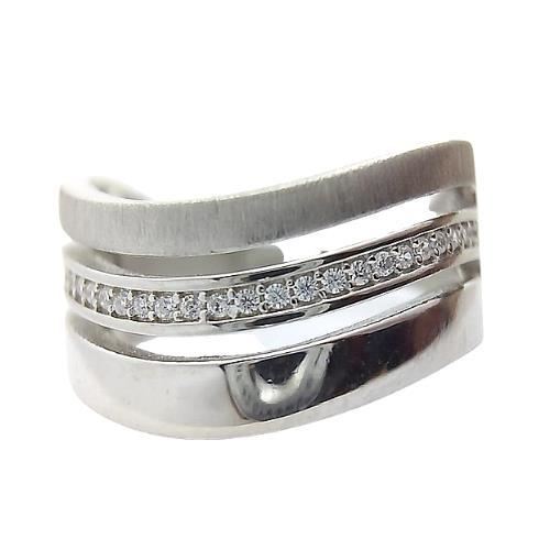 Sortija Plata de Ley en mate y brillo con circonitas, 10mm en disminución.