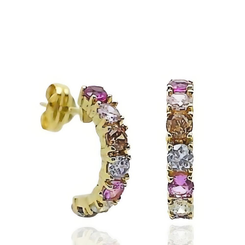 Pendientes Aro Oro Amarillo de 18 quilates con piedras de colores, 15mm y cierre de presión.