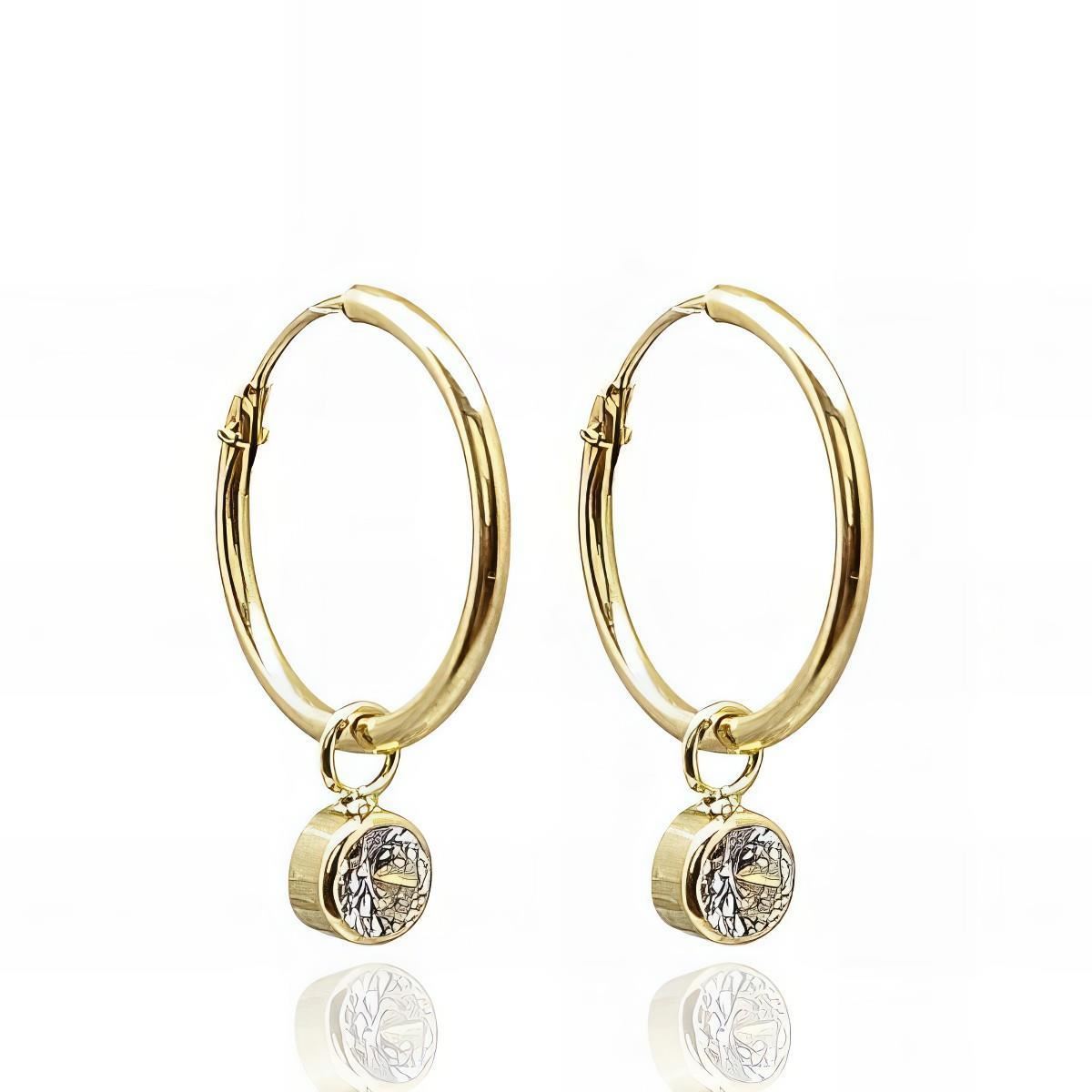 Criollas Oro Amarillo de 18 quilates con chatón de 4mm, grosor de 1mm y diámetro de 12mm.