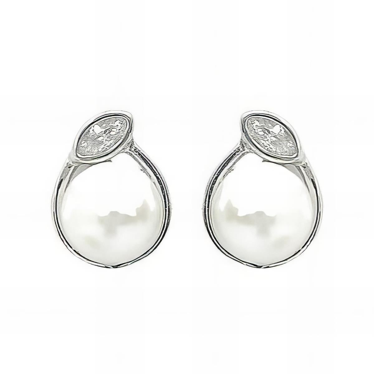 Pendientes Plata de Ley rodiada con perla y circonita, 10mm y cierre de presión.