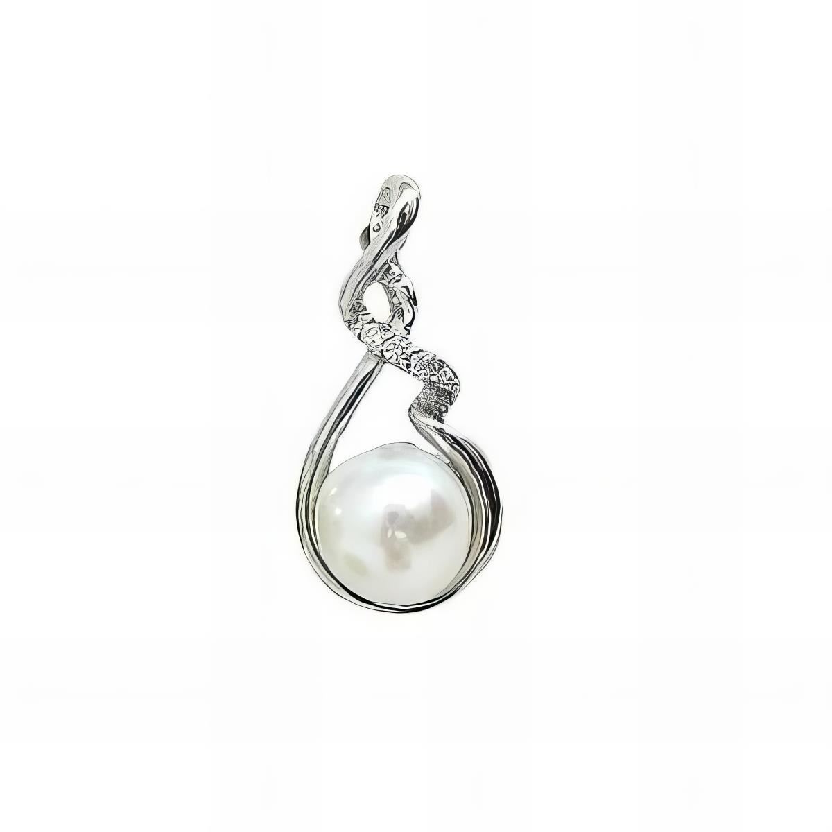 Colgante Plata de Ley rodiada con perla y circonitas, 23mm sin contar asa.