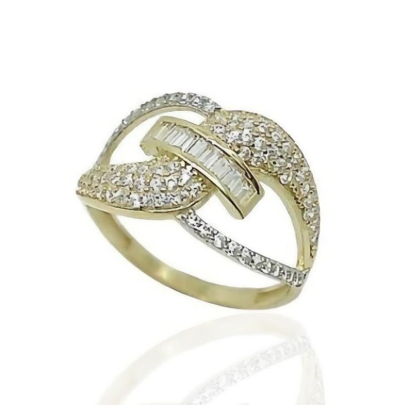 Sortija Oro Amarillo y Blanco de 18 quilates con circonitas, 11mm de ancho en disminución.