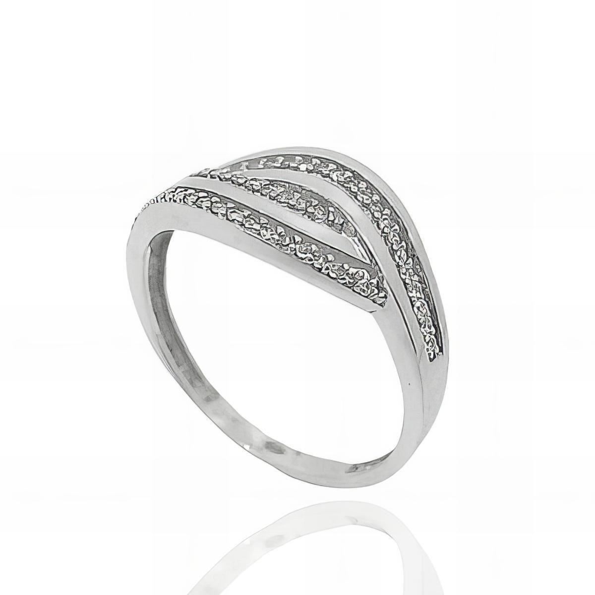 Sortija Oro Blanco de 18 quilates con circonitas, 10mm de ancho en disminución.