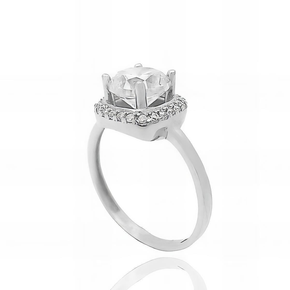 Sortija Oro Blanco de 18 quilates con circonita de 7mm y brazo liso brillo.