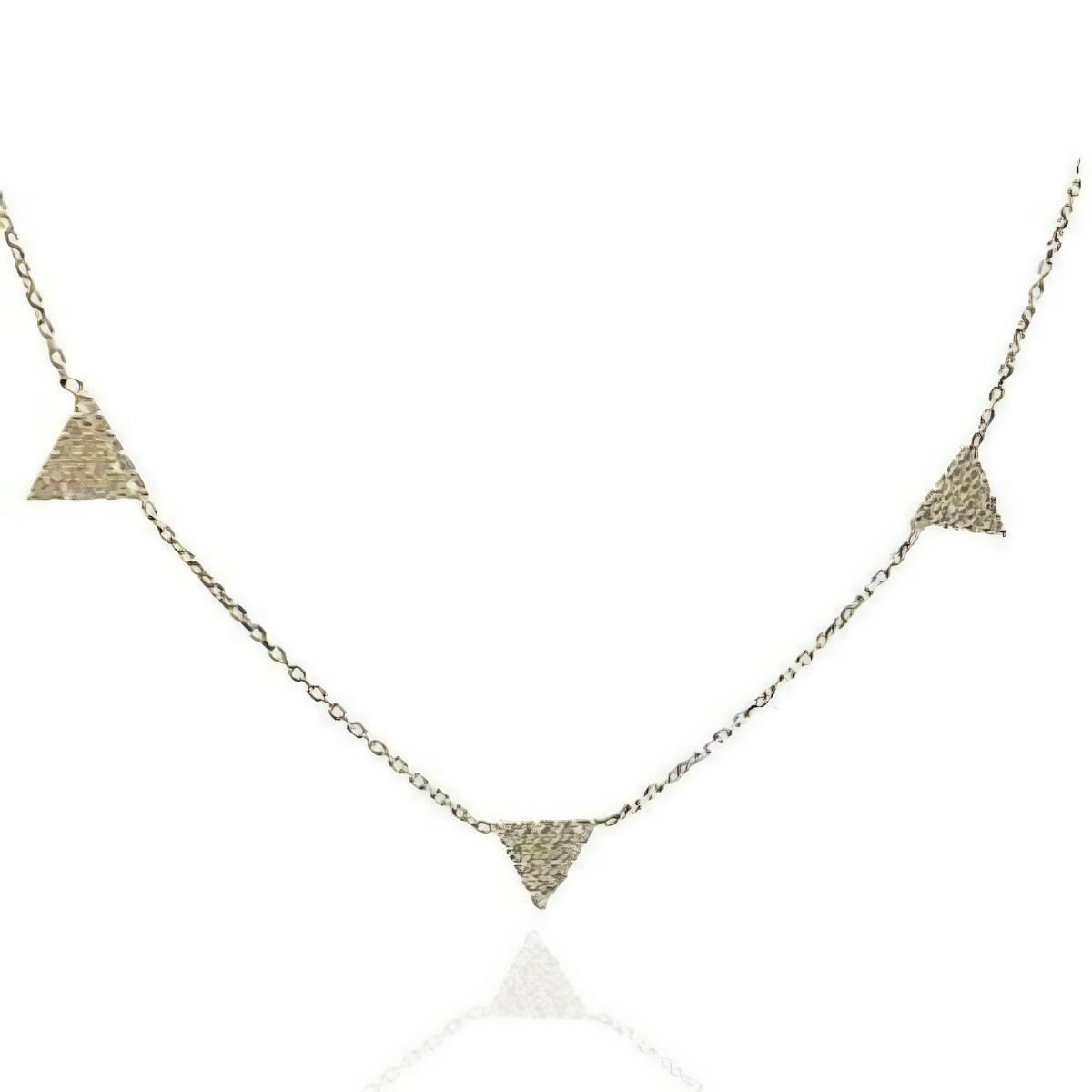 Gargantilla Oro Amarillo de 18 quilates con triángulos de 7mm, largo de 45cm con anilla a 3.5cm para ajustar a la medida deseada.