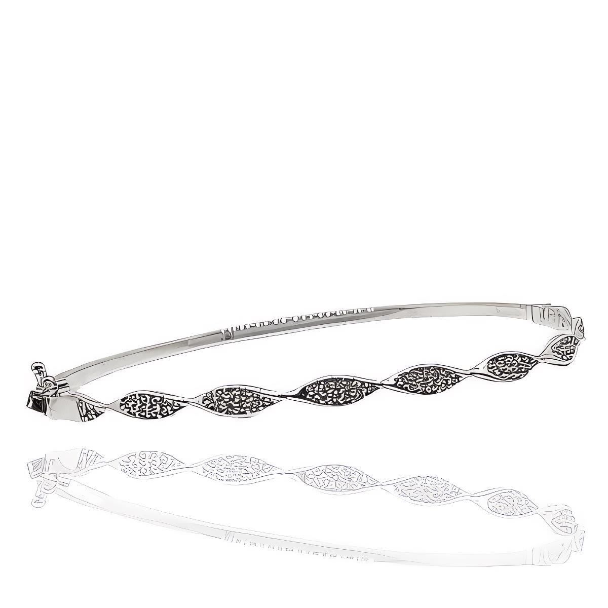 Caña Oro Blanco de 18 quilates con circonitas, 3mm de ancho y 60mm de diámetro, con doble cierre, de lengüeta y de ocho.