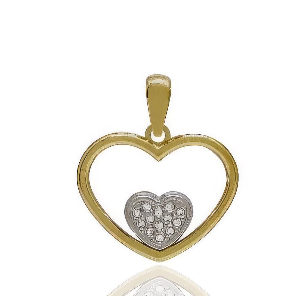 Colgante Oro Amarillo y Blanco de 18 quilates de corazones con circonitas, 16mm sin contar asa.