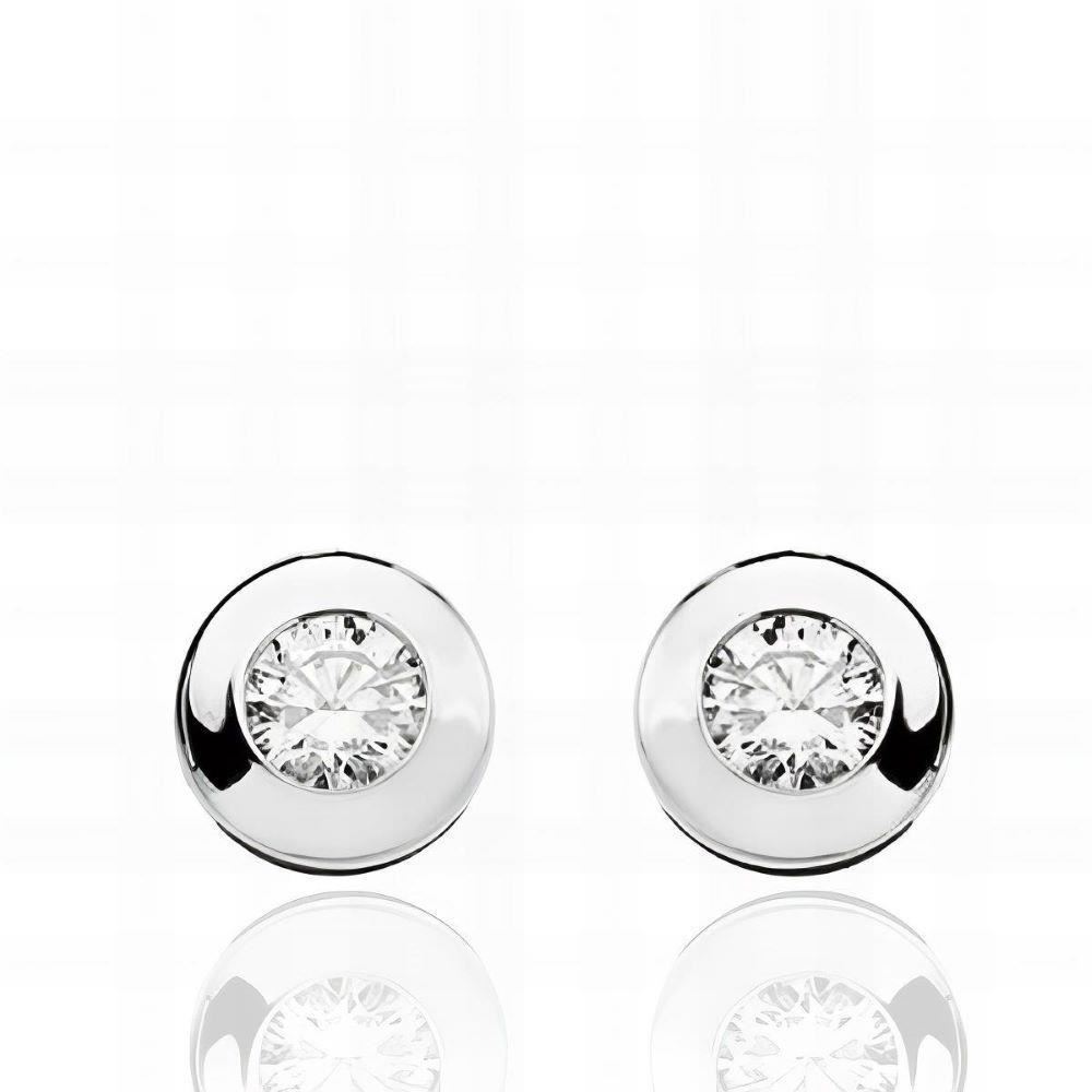 Pendientes Oro Blanco de 18 quilates de chatón de 8.5mm y circonita de 5mm, cierre de presión.