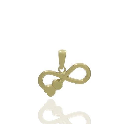 Colgante Oro Amarillo de 18 quilates de infinito con corazones, 18mm de ancho y 8 de alto, sin contar asa.