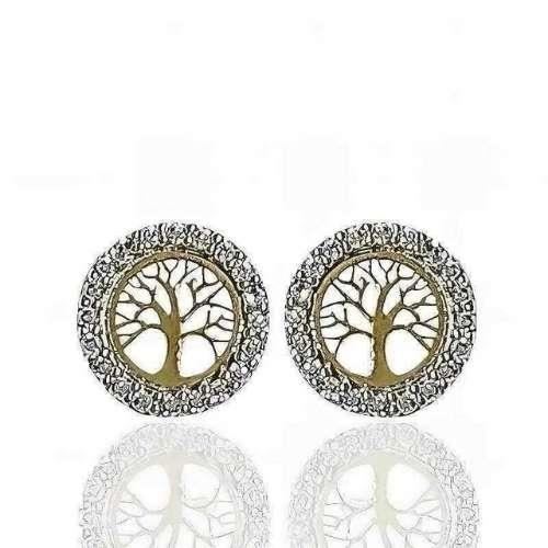 Pendientes Oro Amarillo y Blanco de 18 quilates de Árbol de la Vida con circonitas, 8mm y cierre de presión.