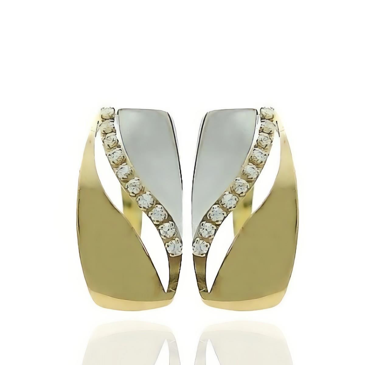 Pendientes Oro Amarillo y Blanco de 18 quilates con circonitas, 14mm y cierre catalán.