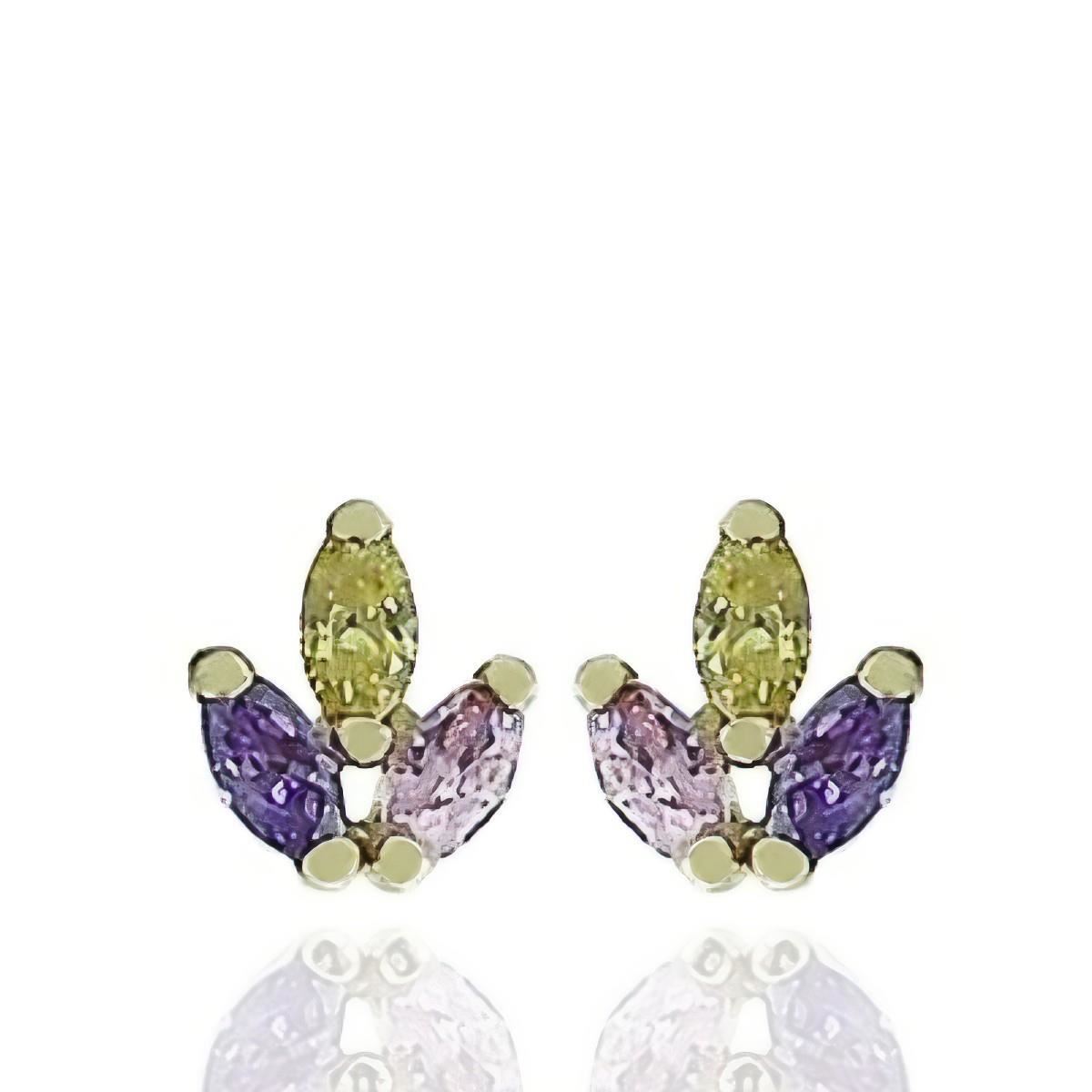 Pendientes Oro Amarillo de 18 quilates con piedras de colores, 6.7mm y cierre de presión.
