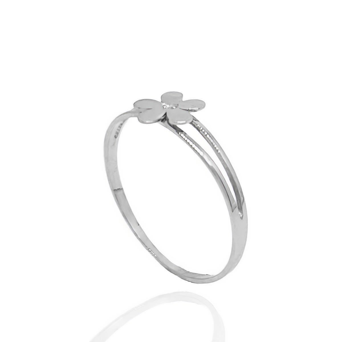 Sortija Oro Blanco de 18 quilates de flor con circonita, 7mm y brazo en disminución.