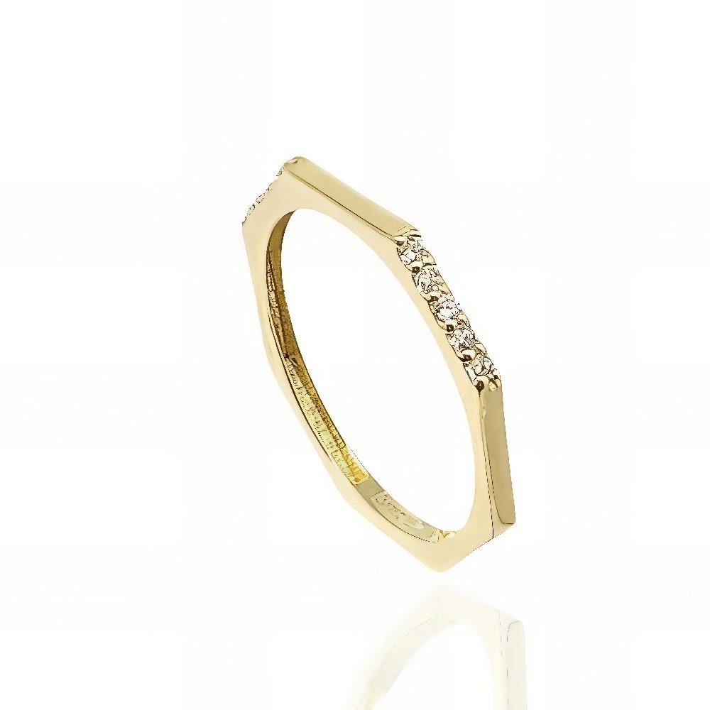 Sortija Oro Amarillo de 18 quilates con ciconitas, forma octogonal, de 1.5mm de grosor.