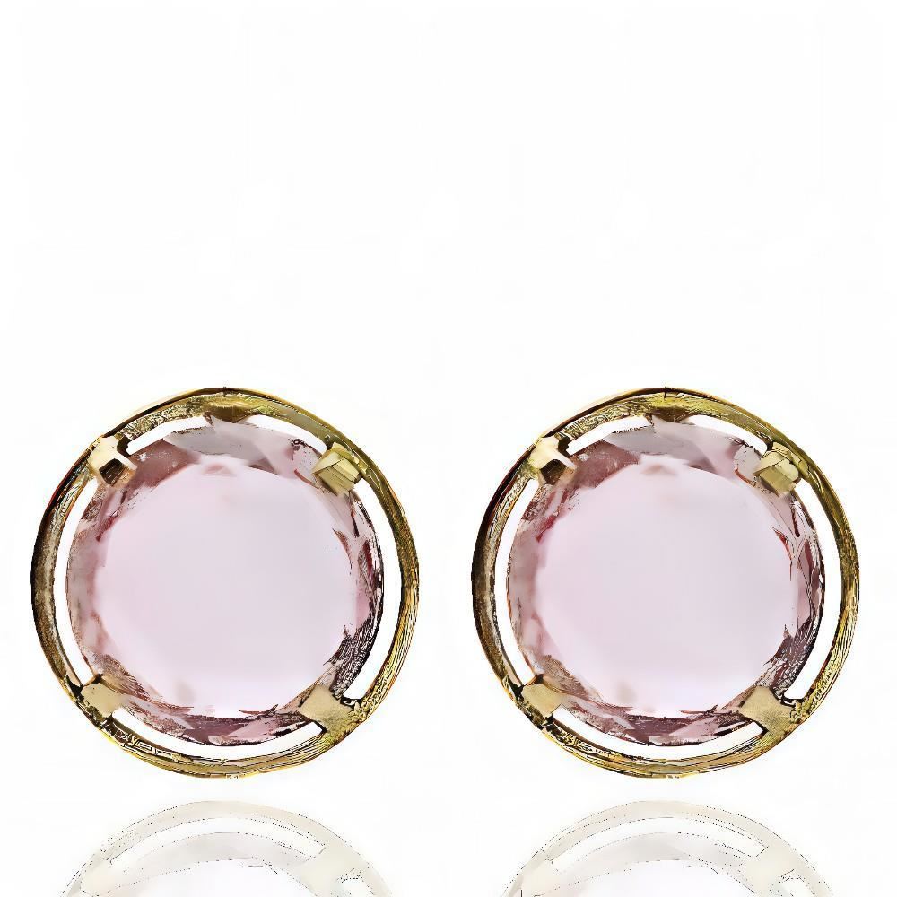 Pendientes Oro Amarillo de 18 quilates con piedra color rosa, 10mm y cierre de presión.