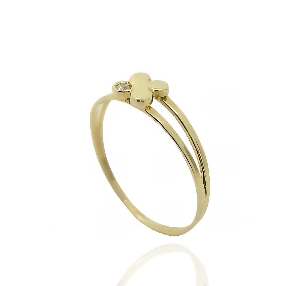 Sortija Oro Amarillo de 18 quilates con motivo de flor y circonita, 5mm y brazo en disminución.