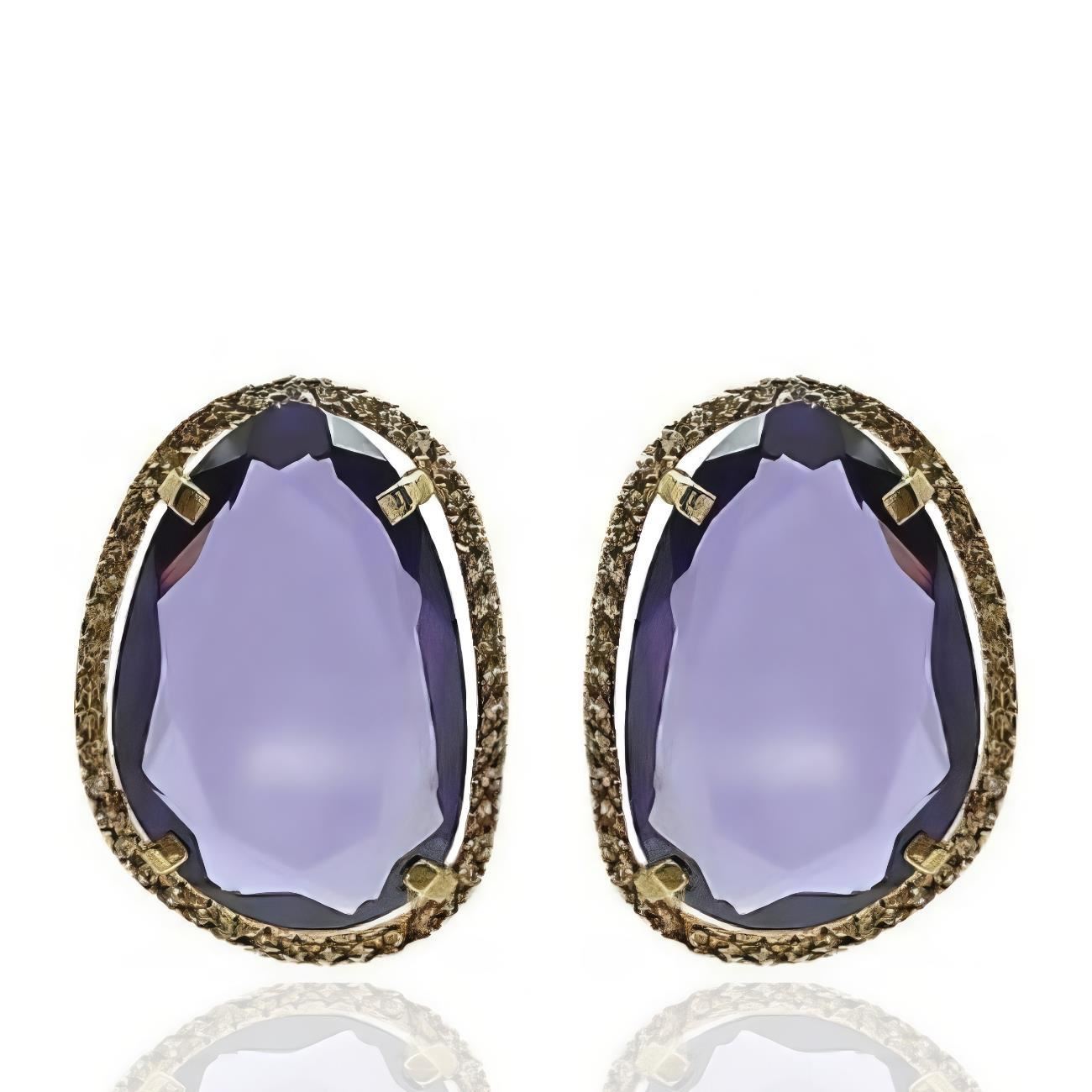 71-4643PM - PENDIENTES PIEDRA COLOR MORADO 20MM 18K