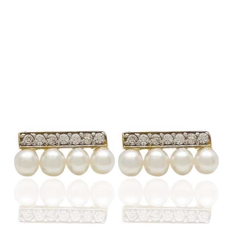 Pendientes Oro Amarillo y Blanco de 18 quilates con perlas y circonitas, 4.5mm y cierre de presión.