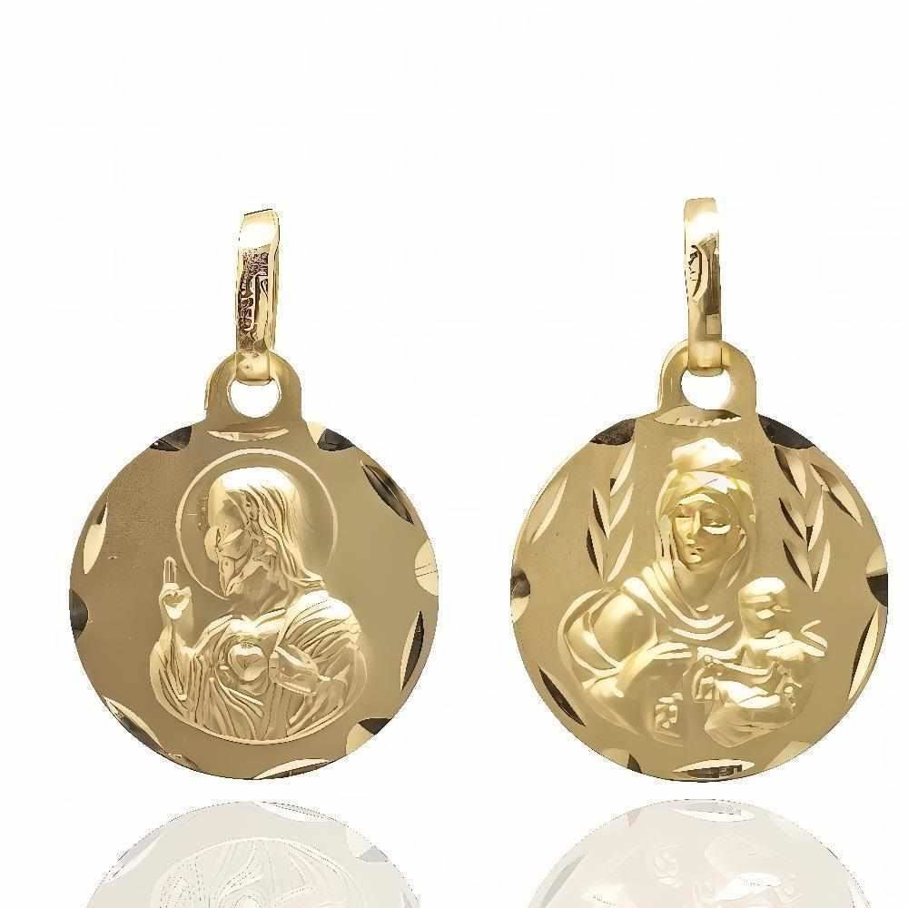 Escapulario Oro Amarillo de 18 quilates con Virgen del Carmen y Corazón de Jesús, 14mm sin contar asa.