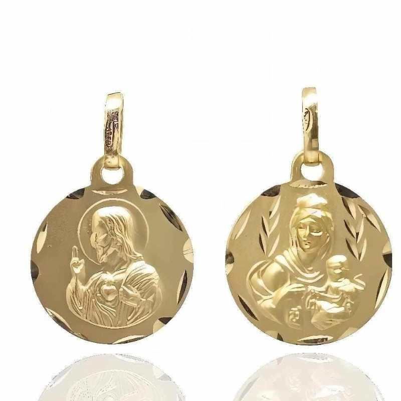 Escapulario Oro Amarillo de 18 quilates con Virgen del Carmen y Corazón de Jesús, 14mm sin contar asa.