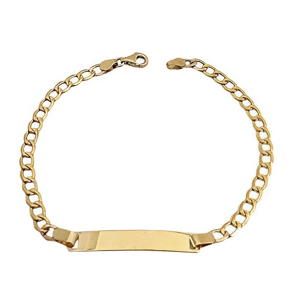 Pulsera Placa Oro Amarillo de 9 quilates de eslabón barbado de 3.mm, placa de 4.8x30mm y largo de 18cm.