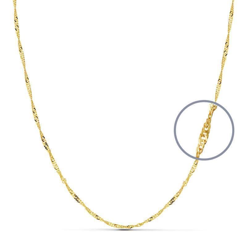 Cadena Oro Amarillo de 9 quilates modelo Singapur, grosor de 1.2mm y largo de 45cm.