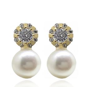 71-3445B - PENDIENTES PERLA CIRCONITA 13MM O.B. 18K
