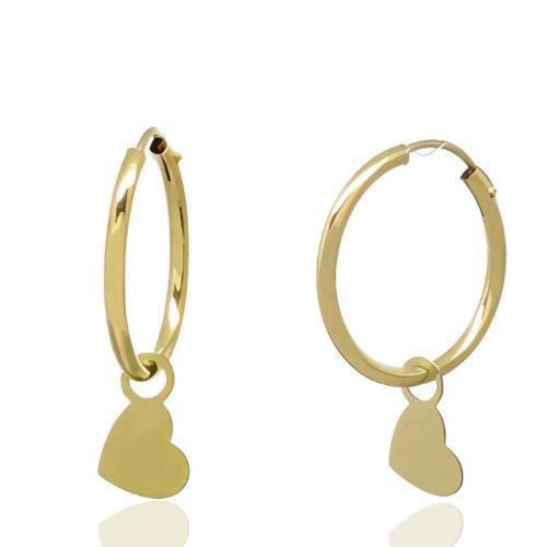 Criollas Oro Amarillo de 18 quilates con corazón de 5mm, grosor de 1mm y diámetro de 14mm.