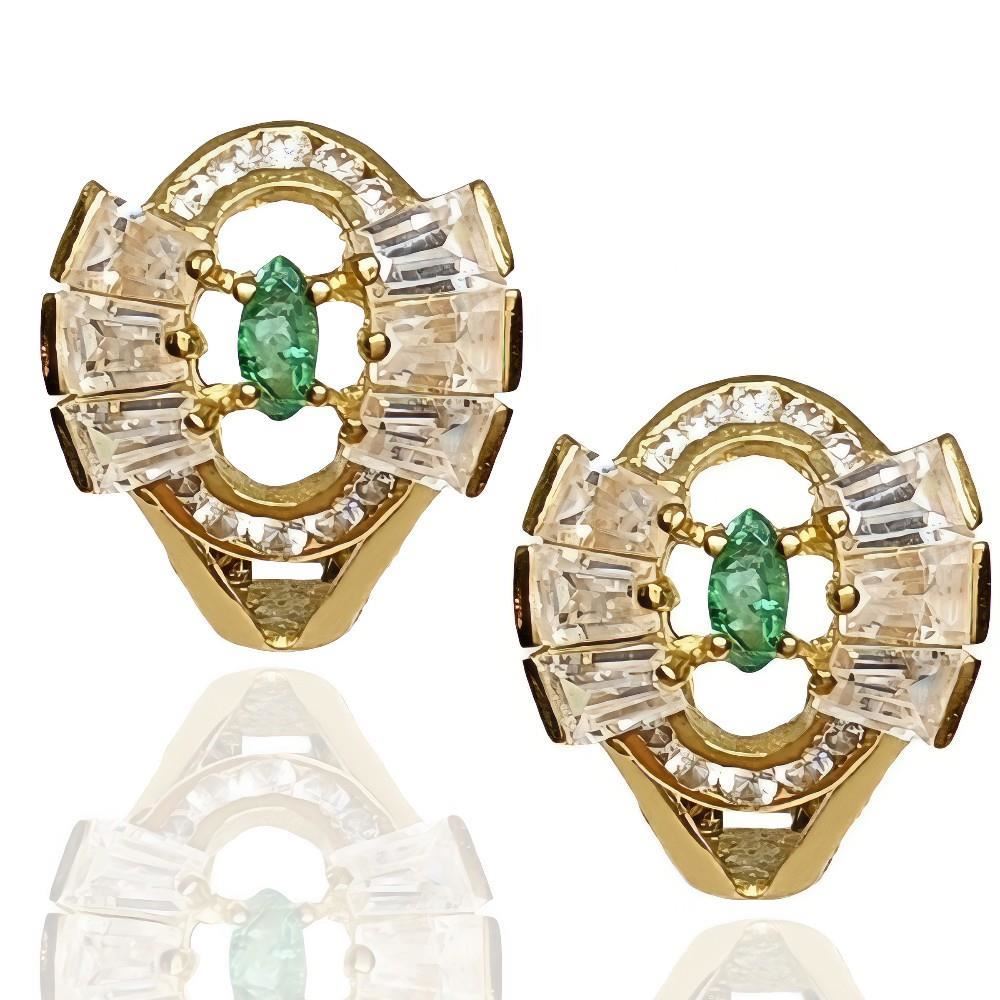 Pendientes Oro Amarillo de 18 quilates de Esmeralda y circonitas, 16mm y cierre omega.