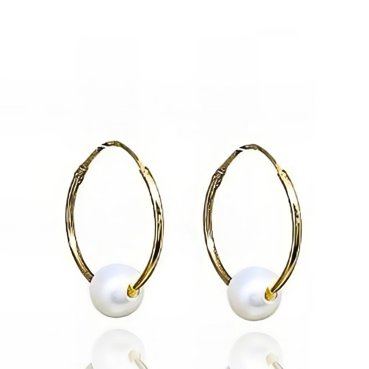 Criollas Oro Amarillo de 18 quilates con perla de 3mm, grosor de 1mm y diámetro de 16mm.