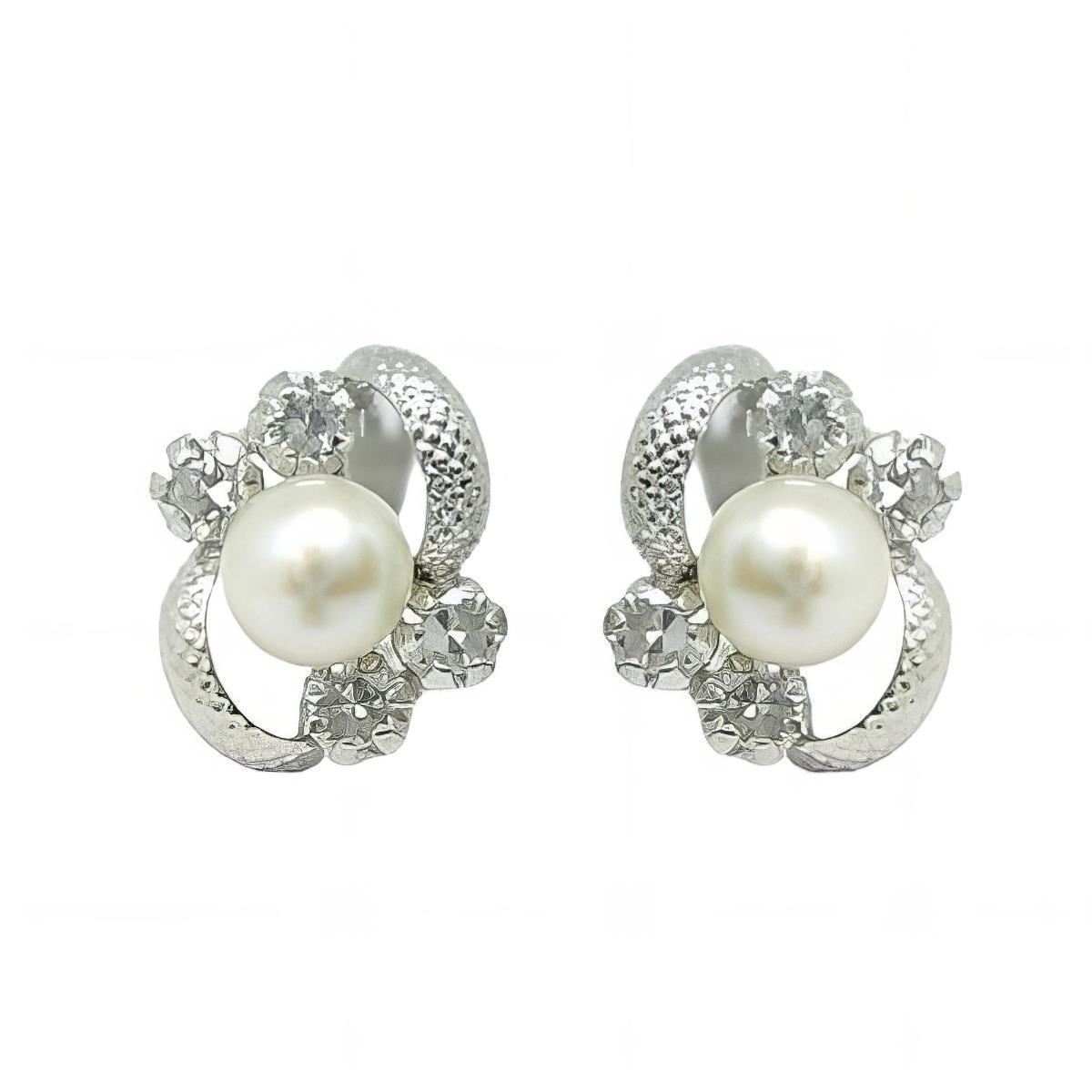 Pendientes Plata de Ley de flor con perla y circonitas, 10mm y cierre catalán.
