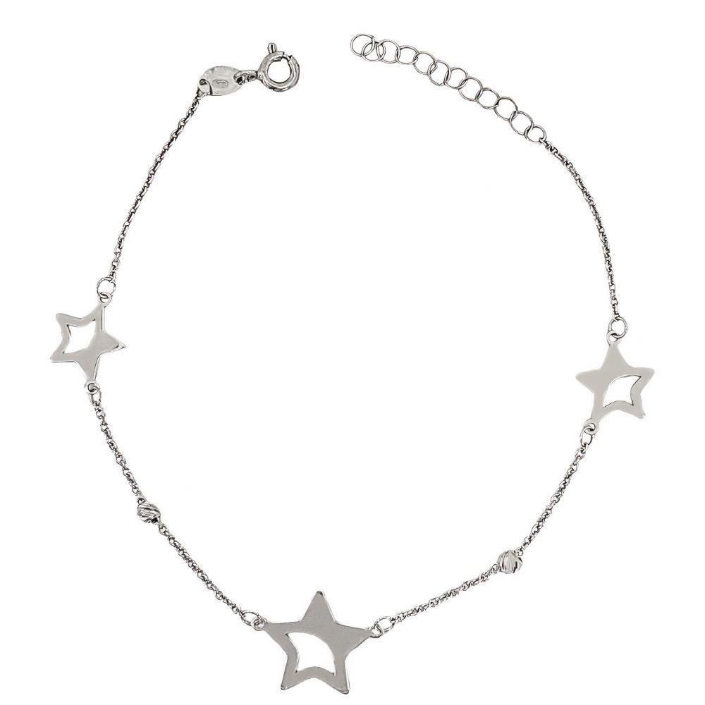 Pulsera Oro Blanco de 18 quilates con estrellas de 14 y 10mm, largo de 18cm con alargador de 3cm.