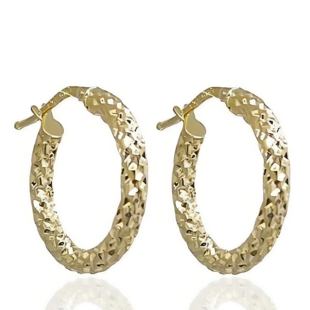 Criollas Oro Amarillo de 18 quilates lapidadas, grosor de 3mm y diámetro de 26mm.