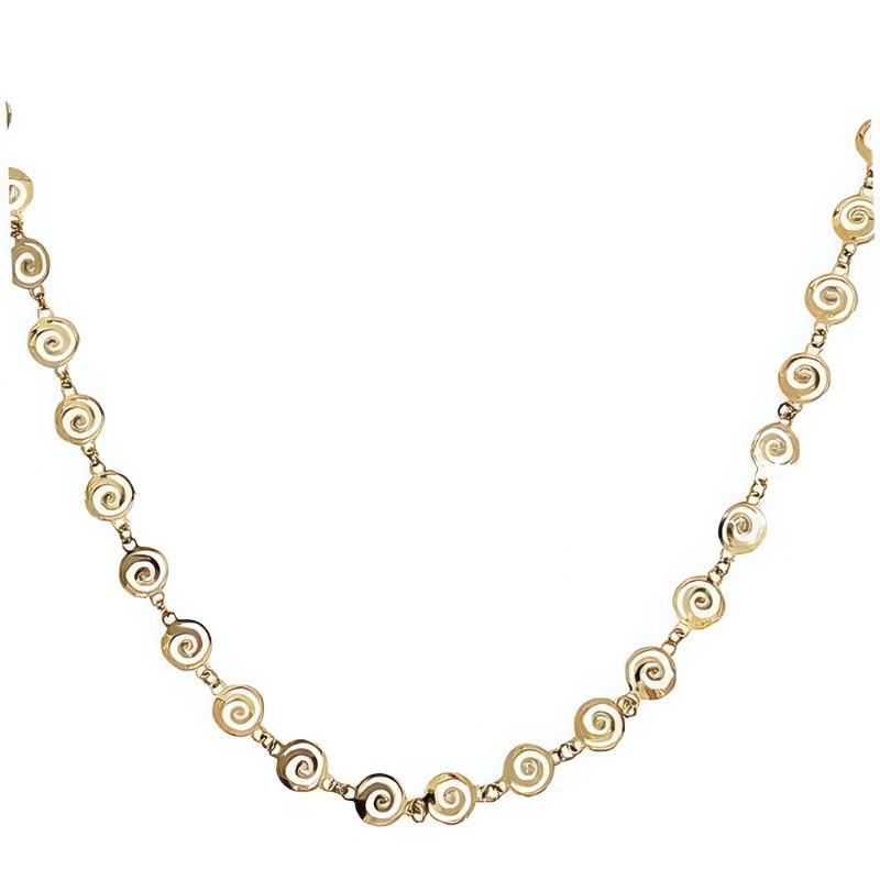 Gargantilla Oro Amarillo de 18 quilates de espirales de 6mm, largo de 45cm con alargador de 3cm para ajustar a la medida deseada.