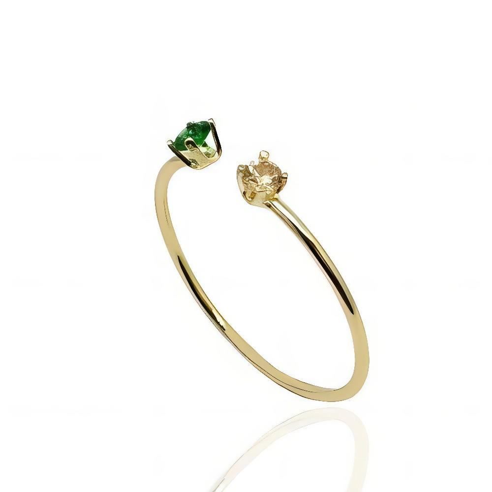 Sortija Oro Amarillo de 18 quilates con piedras de color de 2.5mm, montada en garras y brazo liso en brillo.