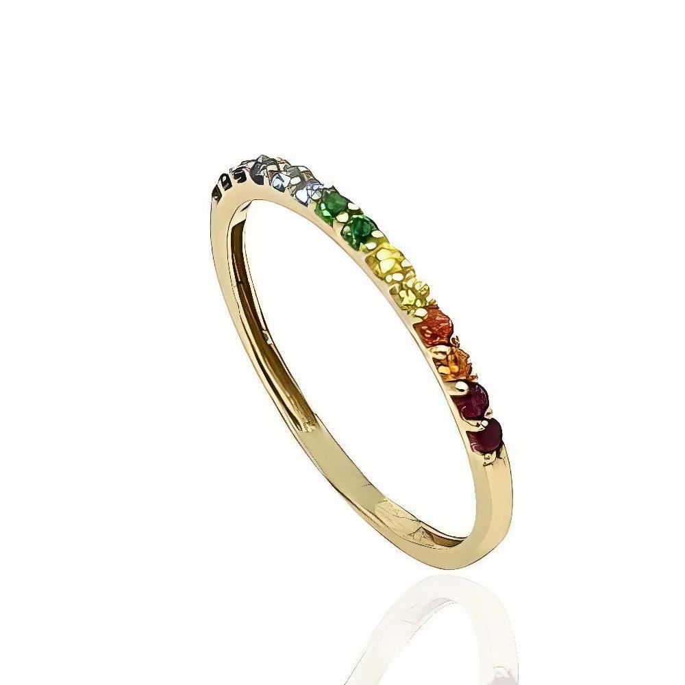Sortija Oro Amarillo de 18 quilates con piedras de colores, grosor de 1.55mm.