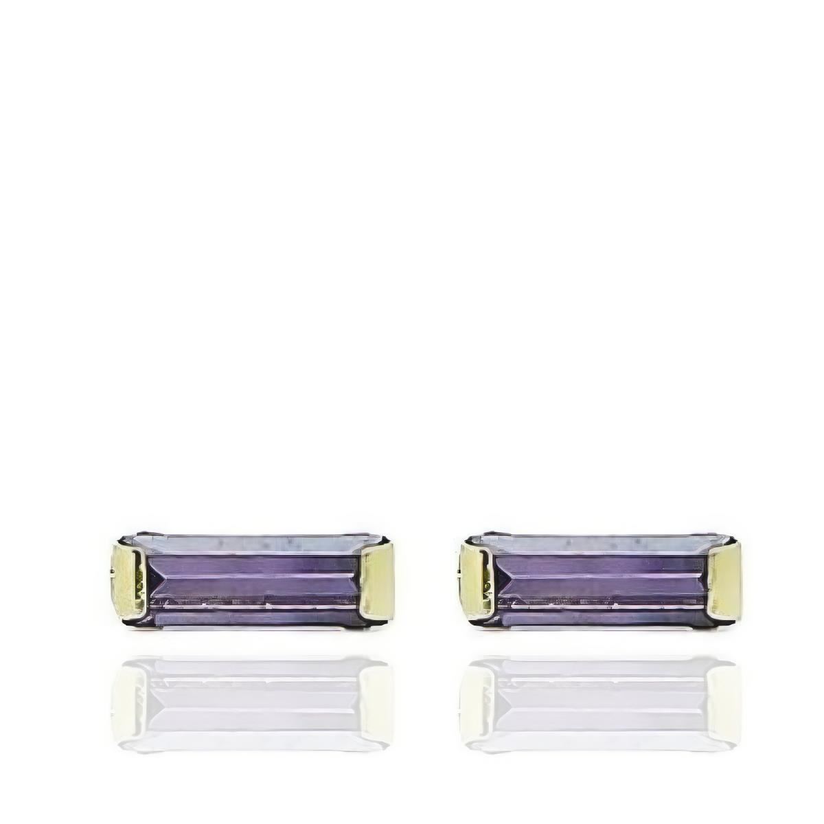 Pendientes Oro Amarillo de 18 quilates con piedra color Lila de 3mm de alto y 7mm de largo, cierre de presión.
