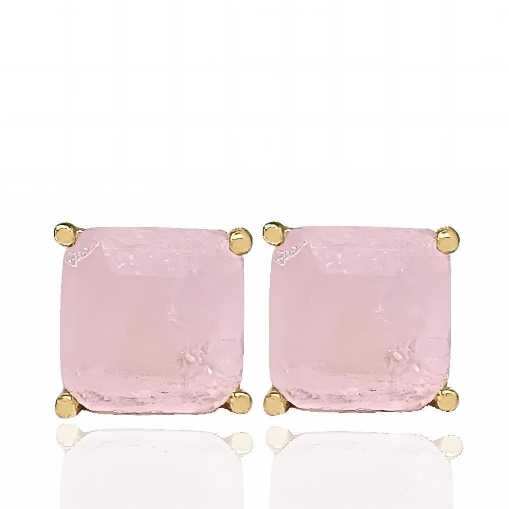 05-3988RS-6 - PENDIENTES PIEDRAS COLOR ROSA 6X6MM PRESIÓN 18K