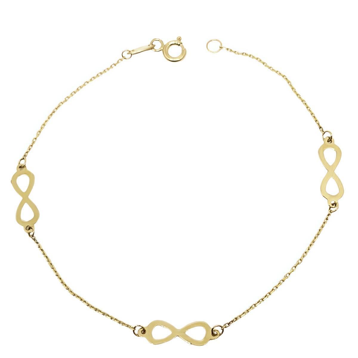 Pulsera Oro Amarillo de 18 quilates, motivos infinito de 13mm, largo de 18.5cm.
