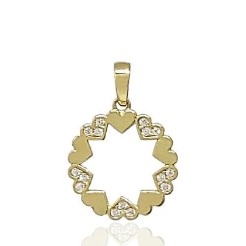 Colgante de Oro Amarillo de 18 quilates de corazones y circonitaS, 14mm sin contar asa.