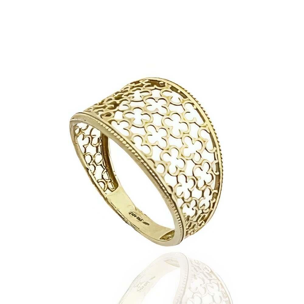 Sortija Oro Amarillo de 18 quilates de flores caladas, 12mm en disminución.