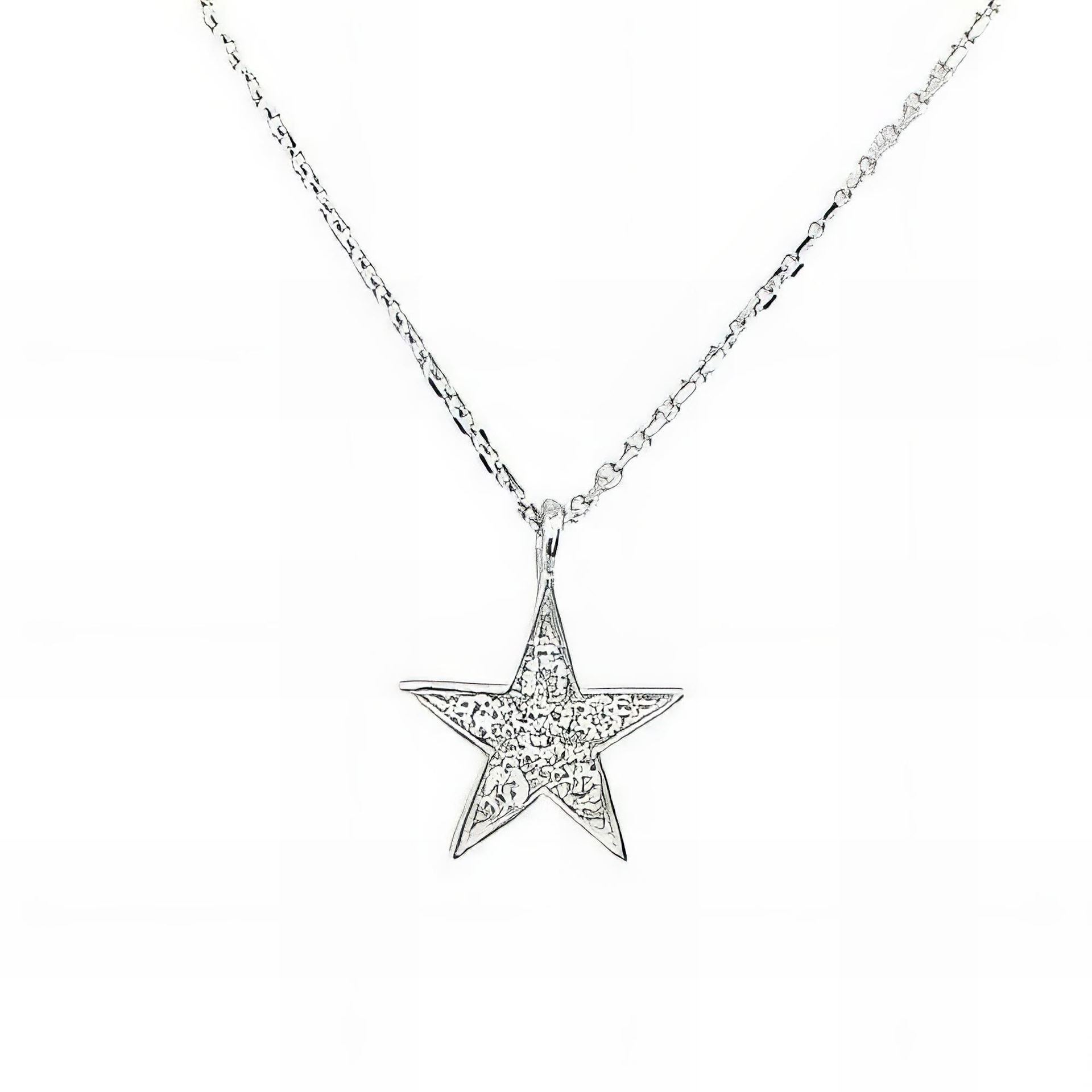 Gargantilla Oro Blanco de 18 quilates de estrella con brillantes, total de 0.060ktes, largo de 45cm.