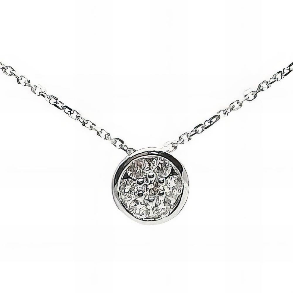 Gargantilla Oro Blanco de 18 quilates de chatón con siete brillantes de 0.18ktes, 6mm y largo de 45cm con anilla a 2.5cm para poder ajustar a la medida deseada.