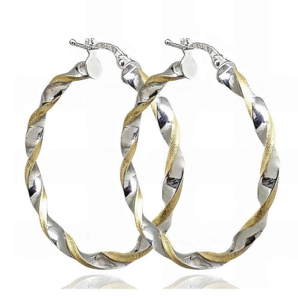 Criollas Oro Amarillo y Oro Blanco de 18 quilates retorcidas, grosor de 3mm y diámetro de 30mm.