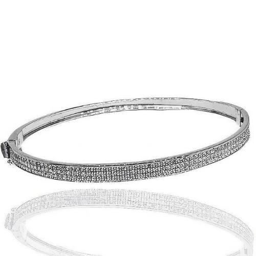 Caña Oro Blanco de 18 quilates con circonitas, 4.5mm de ancho y 60mm de diámetro, con doble cierre, de lengüeta y de ocho.