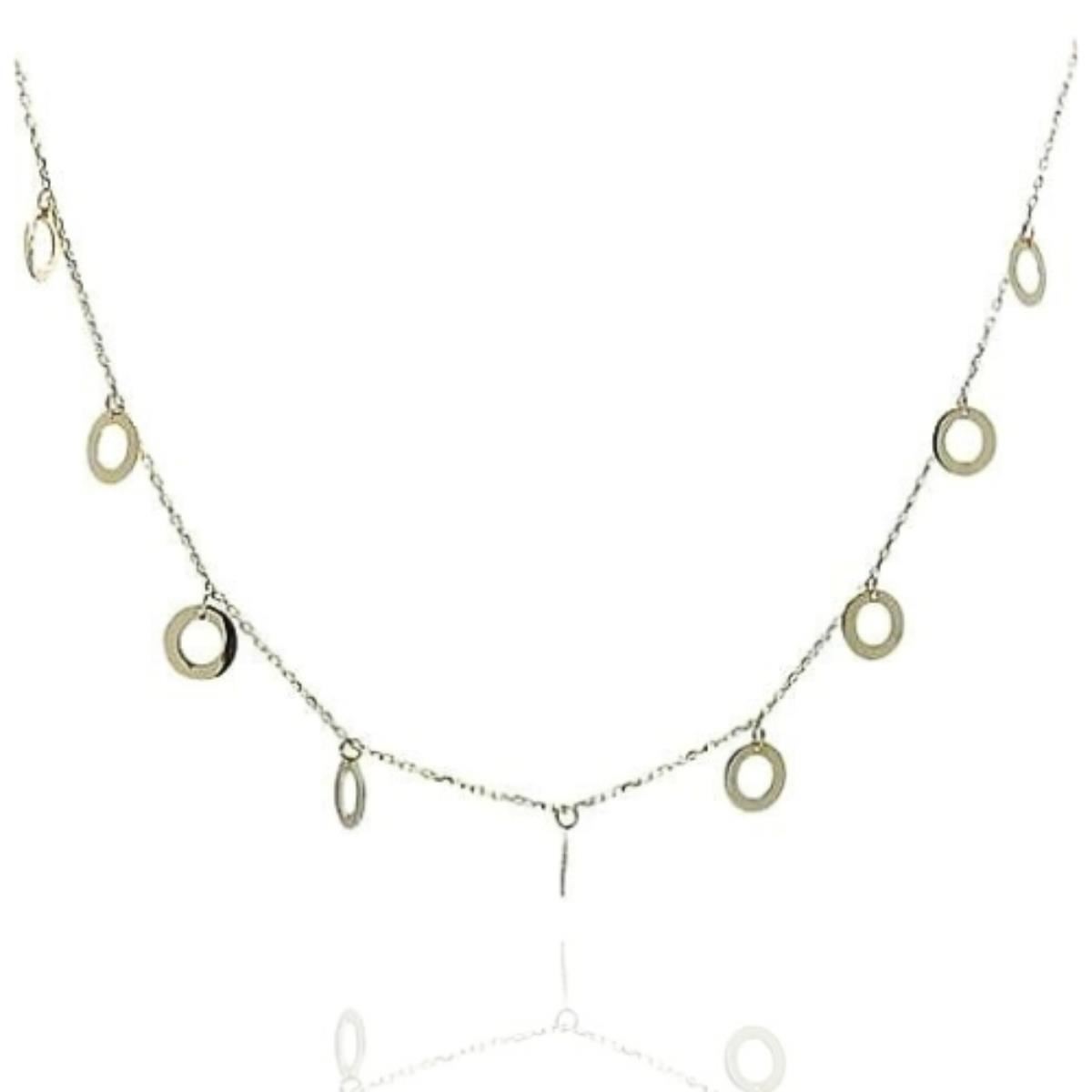 Gargantilla Oro Amarillo de 18 quilates con aros calados de 5.5mm, largo de 42cm más alargador de 3cm para ajustar a la medida deseada.