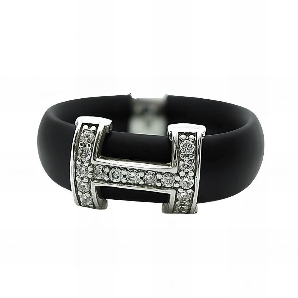 Sortija Plata de Ley con circonitas y caucho, ancho de 8mm.